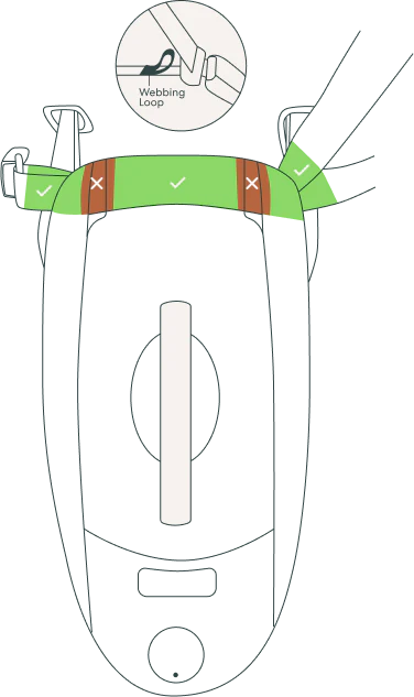 To check if the webbing loop on your vehicle seat belt is interfering with the tensioner on the babyark base (located at the belt path) – see illustration below.
